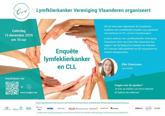 Tegen uiterlijk 10 december 2025 kan je je vragen doorgeven aan elke.stienissen@lymfklierkanker.be. Wij proberen zoveel mogelijk vragen op de webinar aan bod te laten komen of je achteraf een antwoord te bezorgen. We kunnen dit niet voor elke vraag garanderen en hopen op begrip daarvoor.